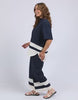 The Scarlet Shirt in Navy Stripe by Elm brings a modern coastal feel to your everyday wardrobe. Made from a breathable blend of viscose, linen, and cotton, this shirt features a soft navy base with eye-catching contrast panel stripes along the hem. With its full button-through front, short cuffed sleeves, and curved hemline, it’s an easy throw-on piece you can style up or down with ease.